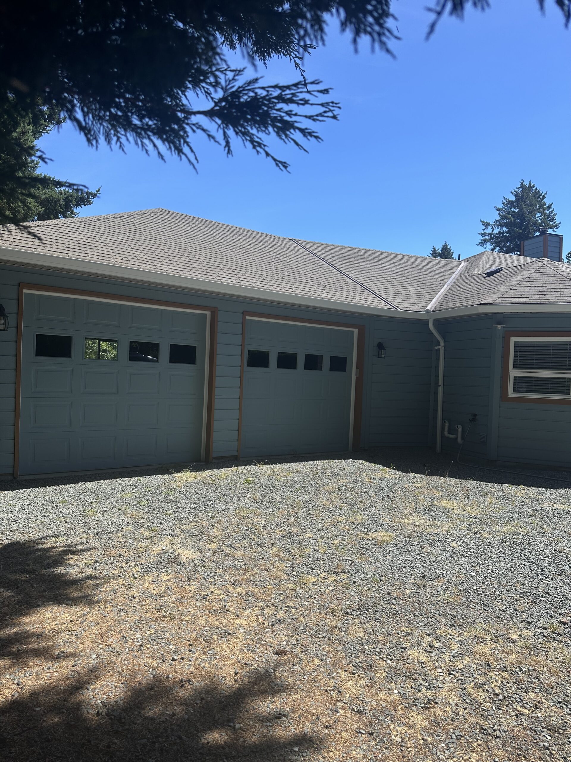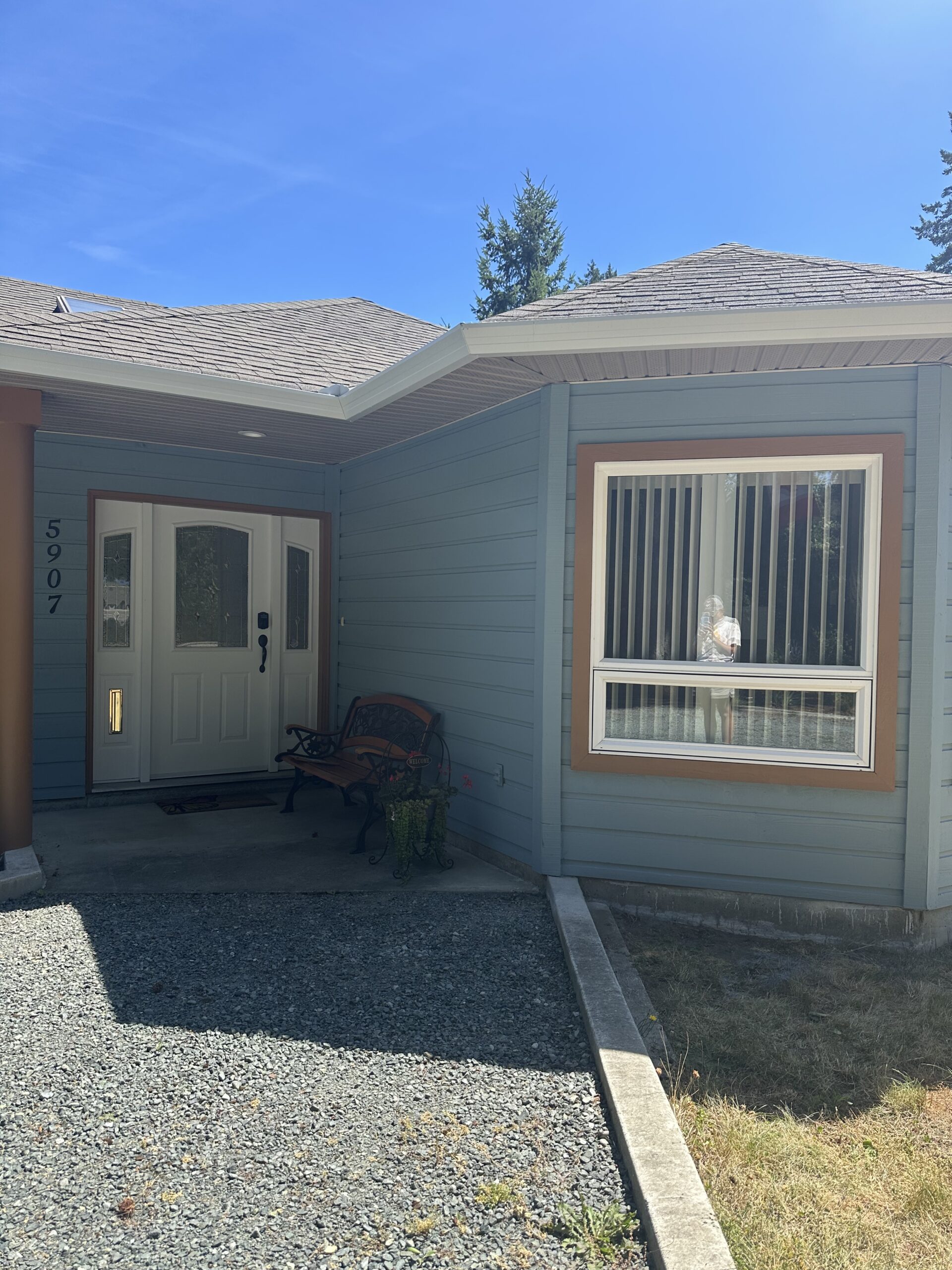 This full exterior repaint project in Duncan, BC, covered a 3,500 sq ft two-story home along with a detached shed on the property. The scope included all siding, trim, garage doors, and entry doors to create a clean and consistent finish across every surface.